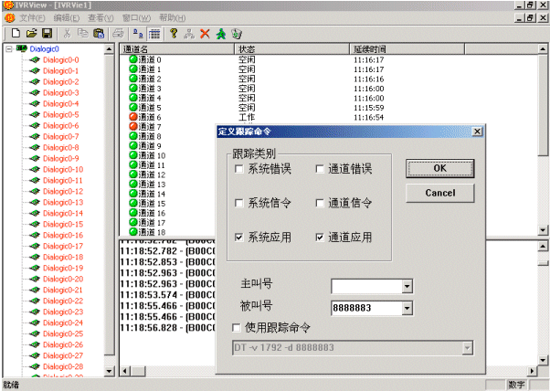 ICANS平臺(tái)提供監(jiān)控模塊,用于控制ICANS平臺(tái)的啟動(dòng)和監(jiān)視平臺(tái)的工作狀況,以及連入其他應(yīng)用模塊。該平臺(tái)可以以圖表方式全屏顯示所有線路狀態(tài)(空閑/撥號(hào)/語(yǔ)音/傳真)及訪問(wèn)總次數(shù),詳細(xì)反映每條線路、每個(gè)任務(wù)的實(shí)時(shí)運(yùn)行情況,便于用戶及時(shí)掌握系統(tǒng)的運(yùn)行情況。