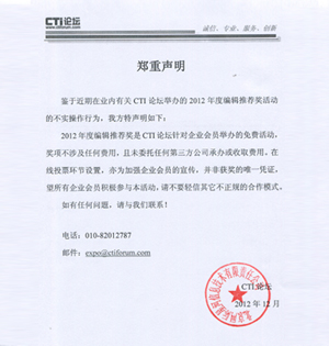 3. 充分利用CTI論壇及合作媒體的優(yōu)勢(shì),廣泛聽取來自業(yè)內(nèi)人士和廣大用戶的意見和建議。
