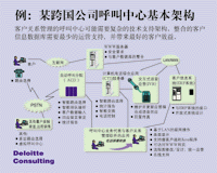---- 圖示是一個(gè)由德勤咨詢(xún)公司為一全球性客戶(hù)提出的呼叫中心建議,呼叫中心經(jīng)常需要這樣復(fù)雜的一個(gè)技術(shù)平臺(tái)和基礎(chǔ)支持才可能實(shí)現(xiàn)快速的來(lái)電和去電處理。