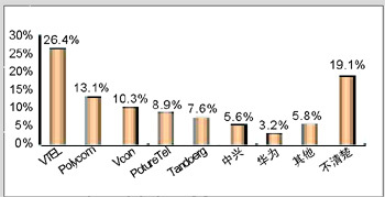 各品牌的認(rèn)知度與其市場(chǎng)銷售情況息息相關(guān)。例如,VTEL是最早進(jìn)入中國(guó)市場(chǎng)的視頻會(huì)議廠商,并在相當(dāng)長(zhǎng)的時(shí)期內(nèi)占據(jù)市場(chǎng)領(lǐng)先地位,取得顯著的品牌認(rèn)知度是有其廣泛用戶基礎(chǔ)作為支撐的;Polycom雖然從1998年才開始進(jìn)軍中國(guó)市場(chǎng),但在基于IP的視頻會(huì)議系統(tǒng)的市場(chǎng)爭(zhēng)奪中取得較好的成績(jī);PictureTel已經(jīng)被Polycom收購(gòu),品牌認(rèn)知度也相對(duì)較低;而國(guó)內(nèi)品牌中興、華為剛剛起步,也很難達(dá)到較高的認(rèn)知度。