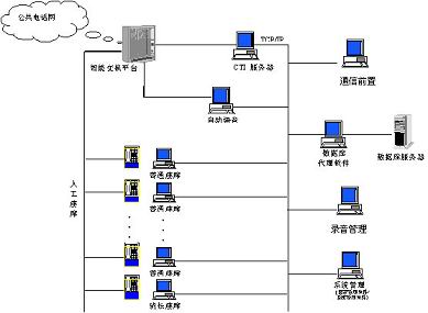 平安保險北京分公司電話客戶服務(wù)系統(tǒng)包括兩部分:自動語音和人工坐席。用戶撥入系統(tǒng)后,先進(jìn)入自動語音系統(tǒng)進(jìn)行處理;用戶在任何時候均可按“0”轉(zhuǎn)入人工坐席。系統(tǒng)直接訪問保險公司的數(shù)據(jù)庫,因此查詢的信息均為實時信息。