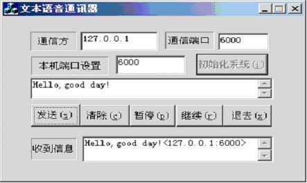 本文的基本設(shè)計思路: 通信方,將通話文本信息通過網(wǎng)絡(luò)傳輸?shù)綄Ψ?對方接收到信息后,顯示信息并同時通過MSTTS 播放出來。