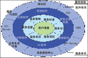 軟件體系層:主要是各種應(yīng)用軟件,提供客戶服務(wù)中心的業(yè)務(wù)開展、信息交流、分析決策等功能 。