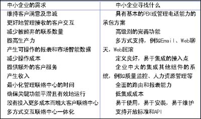 當(dāng)中小企業(yè)從“非正式”轉(zhuǎn)向“正式”客戶中心操作時,他們需要與大型企業(yè)相同的客戶中心能力。對于這些企業(yè),合適的解決方案必須要解決一個重要的業(yè)務(wù)問題,例如以易于客戶聯(lián)絡(luò)的各種方式交流,使其成為真正的客戶中心。也許更重要的是,實(shí)現(xiàn)成本必須處于控制之下且管理良好。中小企業(yè)期望的是功能完善的客戶聯(lián)絡(luò)中心,但是價格必須能夠承擔(dān)得起,低花費(fèi),低培訓(xùn)成本,短期內(nèi)即可實(shí)現(xiàn)。
