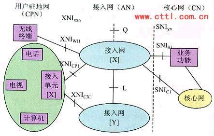 在圖中,XNI為接入網(wǎng)與用戶駐地網(wǎng)的接口,SNI為接入網(wǎng)到核心網(wǎng)之間的接口,L參考點為不同接入網(wǎng)之間的接口參考點。下一代的接入網(wǎng)應(yīng)綜合利用多種手段在XNI和SNI之間提供有質(zhì)量保證的基于分組的寬帶的傳送承載能力。下一代網(wǎng)絡(luò)的接入網(wǎng)應(yīng)具有以下特點: