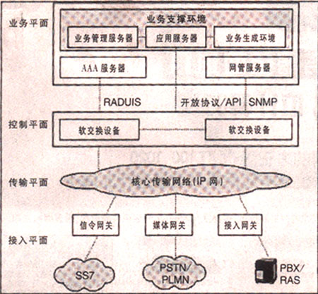 接入平面。提供各種網(wǎng)絡(luò)和設(shè)備接入到核心骨干網(wǎng)的方式和手段,主要包括信令網(wǎng)關(guān)、媒體網(wǎng)關(guān)、接入網(wǎng)關(guān)等多種接入設(shè)備。