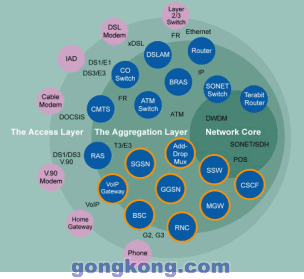 ATCA正在被廣泛應(yīng)用于無線網(wǎng),見圖2中橙色園環(huán)部分,這是由市場對成本效益,快速部署方案的需求驅(qū)動的。服務(wù)提供商和TEM均認識到:用戶愿意為3G網(wǎng)絡(luò)的先進功能所付出的只能是少量的附加費,因此從2G/2.5G向3G轉(zhuǎn)換必須以盡可能低的成本和盡可能靈活的方案來實施,許多TEM已經(jīng)將ATCA看成滿足快速發(fā)展的無線市場需求的唯一技術(shù)。若基于雙星千兆以太網(wǎng)交換互連,ATCA的性能已經(jīng)很好的滿足無線網(wǎng)要求,因為這些網(wǎng)絡(luò)實質(zhì)上是低帶寬而高運算密度的網(wǎng)絡(luò),對于實時敏感的語音應(yīng)用而言,千兆以太網(wǎng)的高速度已經(jīng)消除了延遲的問題。