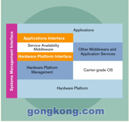 單靠硬件標(biāo)準(zhǔn)本身并不足以提供電信業(yè)要求的競爭優(yōu)勢和成本優(yōu)勢,新的軟件標(biāo)準(zhǔn)正在研發(fā)之中以補充ATCA硬件標(biāo)準(zhǔn),服務(wù)可用性論壇(SA Forum)是一個由世界領(lǐng)先的通信和計算機公司組成的組織,致力于共同開發(fā)和頒布針對高可用性和系統(tǒng)管理的軟件接口規(guī)范,并且積極推動這些規(guī)范在行業(yè)中被采用,目前已經(jīng)頒發(fā)或正在開發(fā)的標(biāo)準(zhǔn)包括: