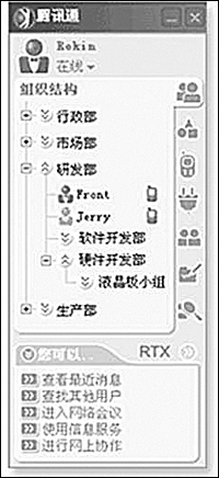 與其他應(yīng)用程序集成是EIM的發(fā)展趨勢(shì),也是企業(yè)現(xiàn)代辦公的一大需求。目前,騰訊通RTX已成功與國(guó)內(nèi)著名的金碟、用友、北京慧點(diǎn)等軟件廠(chǎng)商開(kāi)展合作,使騰訊通RTX的整體功能進(jìn)一步提升,極大地方便了企業(yè)應(yīng)用。比如通過(guò)與金碟OA的集成,實(shí)現(xiàn)了企業(yè)級(jí)實(shí)時(shí)通信平臺(tái)與企業(yè)管理軟件和信息化解決方案的緊密結(jié)合,從而更好地滿(mǎn)足客戶(hù)需求。通過(guò)與用友ERP集成,降低了企業(yè)通信時(shí)間和費(fèi)用,提高了工作效率。