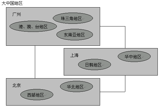建設(shè)單點(diǎn)外包呼叫中心需要具備良好的地域服務(wù)功能,并應(yīng)該是政治、商業(yè)中心,有較強(qiáng)的服務(wù)需求,例如:長(zhǎng)江三角洲的服務(wù)可選擇上海建設(shè)第一個(gè)基點(diǎn)中心,珠江三角洲可選擇廣州為第一基點(diǎn)中心,華北可選擇北京為第一基點(diǎn)中心。如下圖示意: