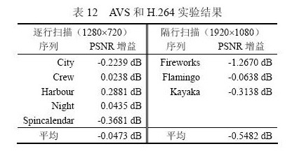 對視頻編碼標準進行客觀評價的常用方法是峰值信噪比PSNR。表9、表10分別給出了AVS與MPEG-2標準以及AVS與MPEG-4 AVC/H.264標準main