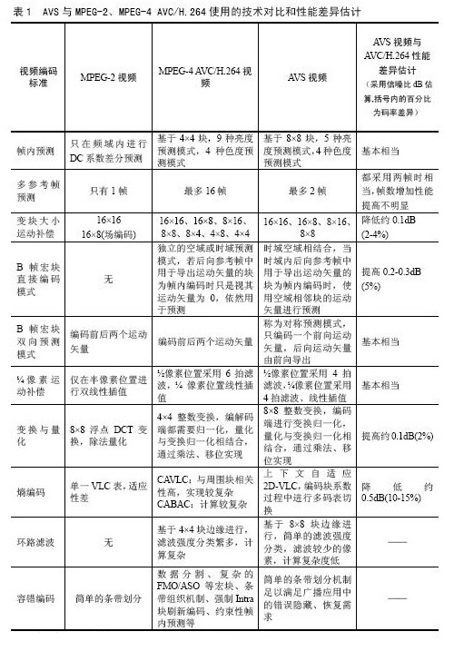 AVS與國際標準MPEG的比較