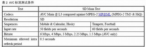 鑒于AVC的編碼效率能夠達到MPEG-2的2倍,我國有關(guān)測試機構(gòu)在測試AVS時,通常把AVS視頻的碼率也設(shè)在MPEG-2典型碼率的二分之一或更低,也就是測試AVS編碼效率是MPEG-2的2倍或更高的情況下的AVS視頻的編碼質(zhì)量是否能夠廣播要求。