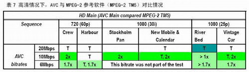 由表可以看出,AVC與MPEG-2參考軟件比,12個可比項中有9個的N大于等于1.8,有2個大于等于4。