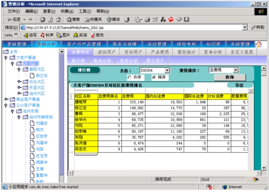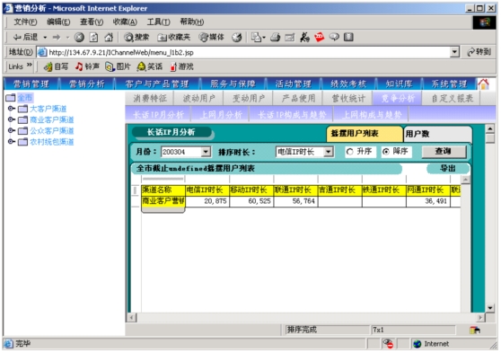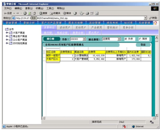 本系統(tǒng)是以市場為導(dǎo)向、客戶為中心、效益為目標(biāo)的電信營銷和服務(wù)的支撐系統(tǒng),為企業(yè)經(jīng)營服務(wù)和營銷戰(zhàn)略提供有力的支撐,通過對業(yè)務(wù)收入、業(yè)務(wù)發(fā)展以及市場競爭的深入分析,從而達(dá)到留住老客戶、發(fā)現(xiàn)新客戶,了解競爭對手動態(tài),及時掌握市場變化趨勢的目的。