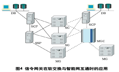 對(duì)現(xiàn)有的智能網(wǎng)來說,軟交換以及它所控制的節(jié)點(diǎn)構(gòu)成一個(gè)虛擬的SSP,可在INAP/CAP/TCAP/SCCP接口上通過信令網(wǎng)關(guān)與現(xiàn)有智能網(wǎng)中的SCP互通,共同提供智能網(wǎng)業(yè)務(wù),或者直接和IP