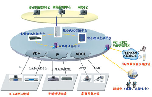 豐富的業(yè)務(wù)提供能力: 基于同一個平臺,可以提供H.264高清晰視訊會議、可視辦公、電話會議、電話接入視訊會議、視訊會議的存儲直播點播、視訊終端和電話互通等功能,并兼容支持原來的H.261/H.263視訊會議。