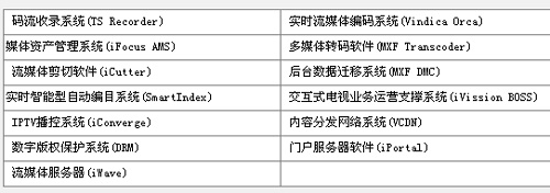 提供重慶網(wǎng)通IPTV系統(tǒng),其中包括所有數(shù)字節(jié)目內(nèi)容的制作、管理、發(fā)布平臺(tái),用戶通過IPSTB實(shí)現(xiàn)在TV上的點(diǎn)播、直播等業(yè)務(wù)。