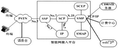 Management Point)的接入管理。SCP通過七號信令網(wǎng)與SSP和IP相連,通過數(shù)據(jù)鏈路(X.25)與SMP相連。SCP與SSP和IP之間的通信規(guī)程采用智能網(wǎng)應用規(guī)程(INAP).IP(Intelligent