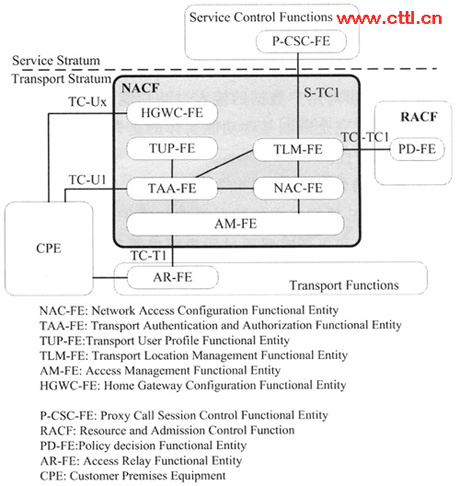 ITU-T沒有設(shè)立單獨(dú)的項(xiàng)目研究NACF,只在NGN的功能需求和架構(gòu)建議草案中對NACF有所提及,所以對網(wǎng)絡(luò)附著子系統(tǒng)的研究相對滯后,研究內(nèi)容主要包括:NACF的功能架構(gòu)、該功能架構(gòu)中包含的邏輯功能實(shí)體等。