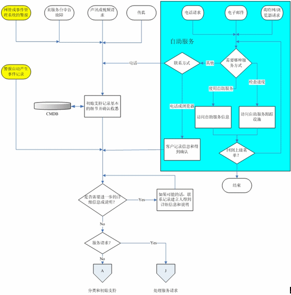 在記錄流程之后,事件將經(jīng)過分類和初始支持流程,而服務請求則被傳遞到“服務請求處理”流程。