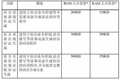 表中所列的RAM和ROM的空間需求是一個(gè)近似數(shù)字
