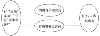 如圖1所示,雖然兩者使用的技術(shù)不同,但它們有一個(gè)相同的運(yùn)營(yíng)組織結(jié)構(gòu),也就是說(shuō),客戶、運(yùn)營(yíng)系統(tǒng)和業(yè)務(wù)/內(nèi)容提供商是它們競(jìng)爭(zhēng)的3要素,下面將從這幾個(gè)方面對(duì)IPTV與“數(shù)字電視”的競(jìng)爭(zhēng)做簡(jiǎn)要的分析。