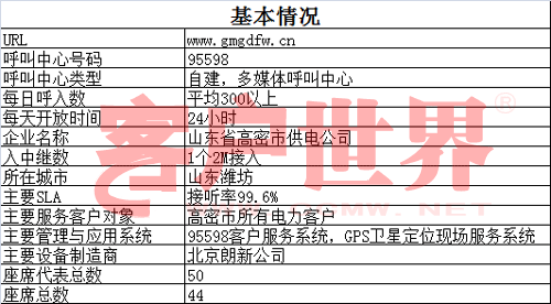 山東省高密市供電公司95598客戶(hù)服務(wù)調(diào)度指揮中心