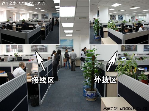 這是寶馬客服呼叫中心大廳,共分兩個(gè)區(qū)域,分別是接線(xiàn)區(qū)和外撥區(qū)。(如上圖所示)通過(guò)對(duì)寶馬呼叫中心的采訪(fǎng)我們得知,客服中心的員工在正式上崗之前有2個(gè)月的培訓(xùn)期,培訓(xùn)兩個(gè)月后才能正式上崗;所以員工一個(gè)月共接8000多個(gè)電話(huà),所有電話(huà)均有錄音。