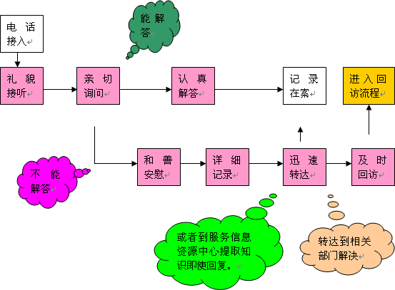 c、 客戶關(guān)系中心的客戶服務(wù)信息資源中心需要及時(shí)整理、收集、豐富客戶服務(wù)信息資源,為話務(wù)人員的咨詢解答和回訪慰問(wèn)提供支持。