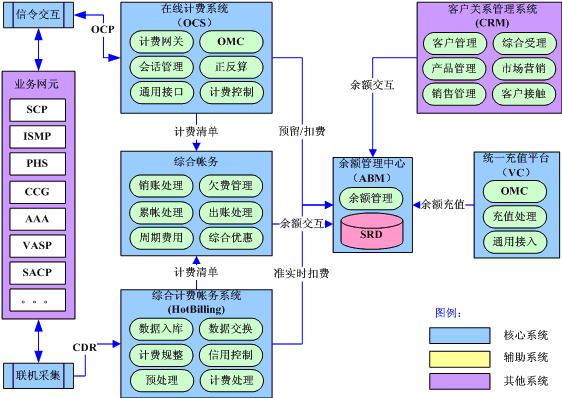 在線(xiàn)計(jì)費(fèi)系統(tǒng)通過(guò)實(shí)時(shí)信令交互實(shí)現(xiàn)對(duì)高風(fēng)險(xiǎn)和高價(jià)值業(yè)務(wù)的實(shí)時(shí)計(jì)費(fèi);綜合計(jì)費(fèi)帳務(wù)系統(tǒng)通過(guò)準(zhǔn)實(shí)時(shí)話(huà)單采集實(shí)現(xiàn)對(duì)后付費(fèi)用戶(hù)的準(zhǔn)實(shí)時(shí)計(jì)費(fèi);綜合帳務(wù)系統(tǒng)實(shí)現(xiàn)全業(yè)務(wù)的綜合優(yōu)惠和帳務(wù)處理;獨(dú)立的余額管理中心實(shí)現(xiàn)對(duì)電信余額的統(tǒng)一管理,未來(lái)將成為電信的“內(nèi)部銀行”;統(tǒng)一充值平臺(tái)實(shí)現(xiàn)全網(wǎng)全業(yè)務(wù)的統(tǒng)一充值支付。