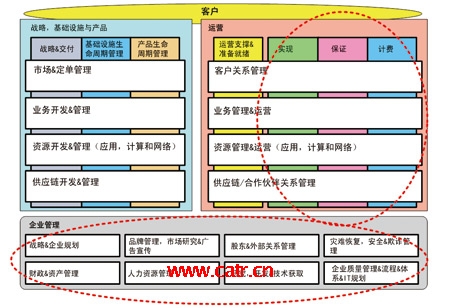總的來看,現(xiàn)有系統(tǒng)基本覆蓋了eTOM各個功能點,實現(xiàn)了市場/客戶、業(yè)務、資源(基礎電信網(wǎng)絡、計算資源及業(yè)務平臺)和企業(yè)管理等功能。