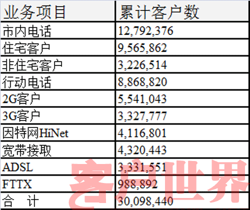 時(shí)至今日,臺(tái)灣中華電信在臺(tái)灣全區(qū)共有15個(gè)Call Center(含3個(gè)查號(hào)中心),共有3,000多位客服人員,服務(wù)本公司固網(wǎng)、行動(dòng)、數(shù)據(jù)、寬帶…等客戶約3,000余萬戶。服務(wù)內(nèi)容包括咨詢、訂單、帳務(wù)、障礙、營(yíng)銷等作業(yè),每月平均受理及處理的話務(wù)量約1,230萬余次。