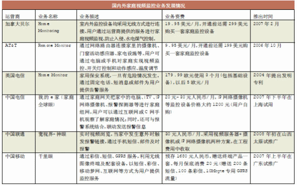 雖然數(shù)字家庭的全面實現(xiàn)還需要相當漫長的過程,但是安防報警、視頻監(jiān)控技術將會最先在數(shù)字家庭中得到應用。目前國內家庭監(jiān)控市場還處于起步階段,然而3G的高帶寬將開辟家庭視頻監(jiān)控新時代,并將催生出巨大的市場商機。