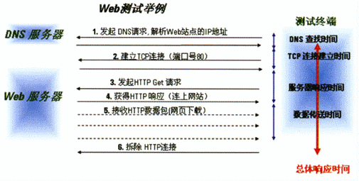 在用戶對無線數(shù)據(jù)業(yè)務(wù)的訪問過程中,通常會包含多個(gè)階段(業(yè)務(wù)處理過程)。如當(dāng)用戶在使用手機(jī)要瀏覽網(wǎng)頁的時(shí)候,先輸入網(wǎng)頁的地址,然后按手機(jī)上的“訪問”按鈕,一段時(shí)間后手機(jī)的屏幕上就會顯示出要瀏覽的網(wǎng)頁頁面?此坪唵蔚倪^程,其實(shí)這里面包含了以下幾個(gè)步驟:DNS查找時(shí)間、TCP連接時(shí)間、服務(wù)器響應(yīng)時(shí)間和數(shù)據(jù)下載時(shí)間。在這中間,只要任何一步出了問題,如DNS解析時(shí)間過長、TCP連接建立時(shí)間過長、應(yīng)用服務(wù)器負(fù)載過重、網(wǎng)絡(luò)可用信道資源少而造成數(shù)據(jù)下載慢,都可能會造成頁面下載失敗。因此,為了能準(zhǔn)確地定位造成用戶對Web服務(wù)質(zhì)量感知度差的原因,我們就需要得到各階段的性能參數(shù),這樣才能快速地進(jìn)行相關(guān)服務(wù)器和網(wǎng)絡(luò)的故障查找并解決問題。