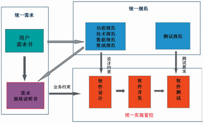 因此,在中國(guó)聯(lián)通新一代BSS系統(tǒng)建設(shè)過程中,業(yè)務(wù)支撐部部依據(jù)傳統(tǒng)的軟件工程方法,借鑒國(guó)際最佳實(shí)踐經(jīng)驗(yàn),使用國(guó)際最新的需求工程理論和產(chǎn)品線開發(fā)理論,結(jié)合聯(lián)通的實(shí)施情況,提出了全新的“中國(guó)聯(lián)通IT系統(tǒng)定制軟件產(chǎn)品的管控方法”,即“四統(tǒng)一”的管控模式,并在新一代BSS試點(diǎn)工程中付諸實(shí)施,取得了良好的效果。