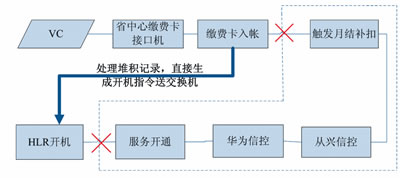 以圖4智能網(wǎng)充值開機流程為例,其經(jīng)歷的步驟繁多,特別是其中信控判斷邏輯復(fù)雜,程序處理耗時多,是引起月結(jié)用戶充值到賬但無法及時開機的關(guān)鍵環(huán)節(jié)。站在服務(wù)用戶的角度,最直接的應(yīng)急方式便是提取已繳費入賬的號碼直接送HLR施工開機,對于存在欠費可能的用戶,其開機狀態(tài)在正常流程進行修復(fù),但對于充值后仍欠費的用戶,其開機狀態(tài)將在經(jīng)歷過信控后自動被修改為停機。