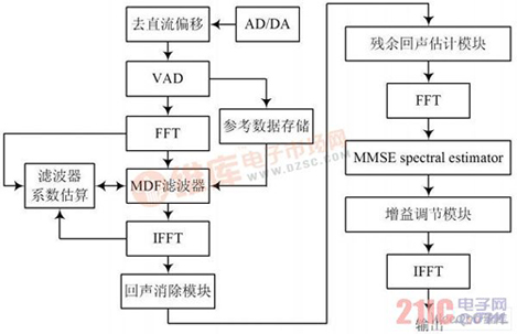 摘 要:聲學回聲消除器一直是視頻會議系統(tǒng)不可缺少的組件。將回聲消除算法結(jié)合噪音消除和靜音檢測算法等,提出一種改進的實時音頻處理系統(tǒng)方法,并在TMS320C6713B 上實現(xiàn),能夠有效改善噪音、雙工檢測、非線性回聲等導致自適應(yīng)濾波器發(fā)散的問題。該系統(tǒng)在保證正常雙工通話的同時,對非線性回聲的抑制有著明顯的改善效果。