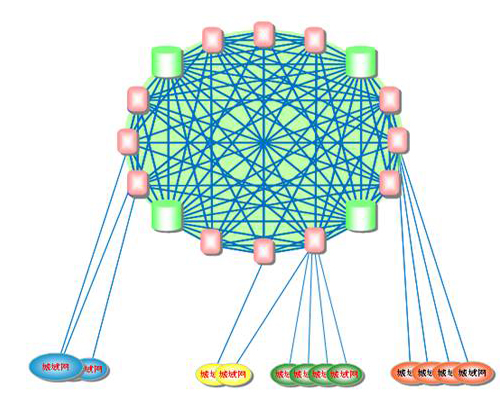 網(wǎng)絡扁平化概念就適時提出來了。現(xiàn)在,網(wǎng)絡扁平化已經(jīng)是運營商網(wǎng)絡建設的主要指導思想了。特別是中國聯(lián)通,由于歷史原因造成的骨干網(wǎng)節(jié)點并不夠多導致其南北方網(wǎng)絡品質(zhì)存在一定差異。而扁平化后能很好的解決此問題。下圖為網(wǎng)絡扁平化示意圖。