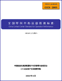 《全國(guó)呼叫中心運(yùn)營(yíng)績(jī)效標(biāo)準(zhǔn)》(China Contact Center Standard for Operation Performance,簡(jiǎn)稱"CCCS-OP-2003標(biāo)準(zhǔn)"),是由CTI論壇客戶關(guān)系管理學(xué)院負(fù)責(zé)策劃和起草,并聯(lián)合該領(lǐng)域內(nèi)具有代表性的客戶服務(wù)提供商、運(yùn)營(yíng)商一起同心協(xié)力,站在行業(yè)發(fā)展的最前沿,共同創(chuàng)建的客戶服務(wù)及呼叫中心行業(yè)運(yùn)營(yíng)標(biāo)準(zhǔn),并最終由信息產(chǎn)業(yè)部中國(guó)信息化推進(jìn)聯(lián)盟客戶關(guān)系管理專(zhuān)業(yè)委員會(huì)發(fā)布實(shí)施的行業(yè)標(biāo)準(zhǔn)。該標(biāo)準(zhǔn)填補(bǔ)了國(guó)內(nèi)在該領(lǐng)域的一項(xiàng)空白,并將帶動(dòng)整個(gè)行業(yè)不斷地向前發(fā)展。