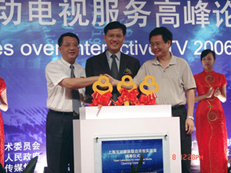 市科委主任李逸平在講話中表示,作為國家數(shù)字電視先行先試城市,上海高度重視數(shù)字電視互動技術(shù)的發(fā)展!吧虾;用襟w聯(lián)合開放實驗室”成立,是推進(jìn)上;与娨暜a(chǎn)業(yè)化發(fā)展、探索“三網(wǎng)融合”發(fā)展的又一舉措。國家重大專項“高性能寬帶信息網(wǎng)”落地上海,率先開通了包括1路高清和116路標(biāo)清的互動電視服務(wù),推動互動電視在長寧、浦東、閘北等地試驗示范,讓互動電視不再高不可攀,而是走入了尋常百姓家。