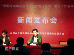 2月7日,中國電子商會呼叫中心與客戶關(guān)系管理專業(yè)委員會(CNCCA)在北京信息產(chǎn)業(yè)部萬壽路辦公區(qū)召開“中國呼叫中心技術(shù)及運營管理規(guī)范”制訂工作啟動新聞發(fā)布會。在京各主要新聞媒體高度關(guān)注在國家宏觀政策轉(zhuǎn)向服務(wù)外包的大背景下,呼叫中心中國標準的出臺將為產(chǎn)業(yè)的發(fā)展和國際競爭格局的變化帶來如何的影響。呼叫中心行業(yè)各知名廠商、運營商、服務(wù)提供商代表出席新聞發(fā)布會。會議同時發(fā)布了《2007年中國呼叫中心運營標桿管理報告》。