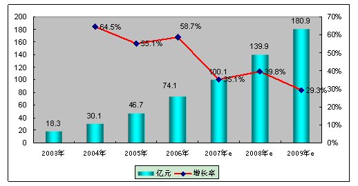 在《2006-2007年中國增值服務(wù)提供商發(fā)展趨勢及市場機會研究報告》中顯示,2006年,我國WAP業(yè)務(wù)發(fā)展勢頭迅猛,市場總量由2005年的46.7億元增長到74.1萬元,從用戶數(shù)情況來看,2006年年底,WAP業(yè)務(wù)用戶總數(shù)達到4798.4萬戶。2007年,WAP業(yè)務(wù)仍然會有長足的發(fā)展,絕對增長將有所提高,需要新的技術(shù)和業(yè)務(wù)內(nèi)容,以創(chuàng)造新的增長,市場總量預(yù)計將超過100億元。