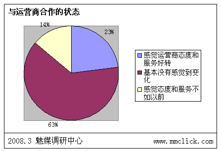 魅媒無線調(diào)研中心認(rèn)為:由于前期政府以及運(yùn)營商對SP行業(yè)的相關(guān)整頓效果明顯,相關(guān)的制度、措施以及管理系統(tǒng)上線后,SP違規(guī)的風(fēng)險(xiǎn)已經(jīng)越來越大,行業(yè)自律狀態(tài)較之前有明顯的改善。但是由于部分的制度明顯存在矯枉過正現(xiàn)象,不少的措施嚴(yán)重影響到用戶的體驗(yàn),而且對SP管理一直出于消極的狀態(tài),需要不斷調(diào)整。