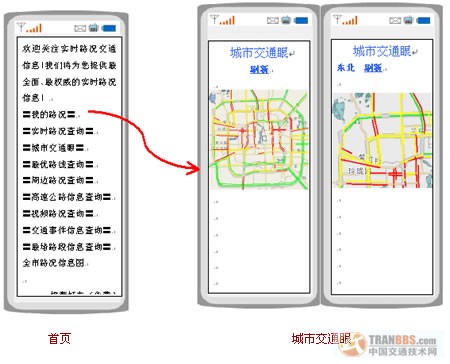 手機上通過短信查詢動態(tài)交通信息,提供動態(tài)路徑規(guī)劃,定制道路路況播報。