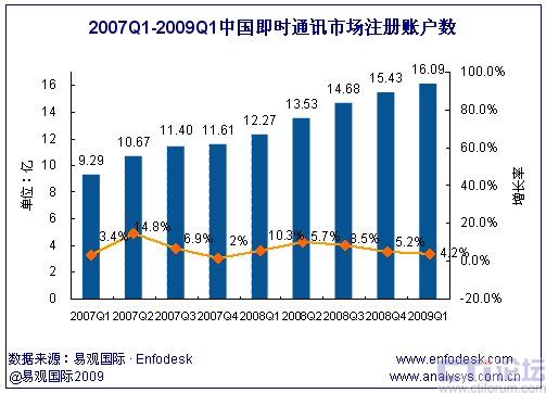 2009年第1季度中國即時通訊市場累計注冊賬戶數(shù)達16.1億