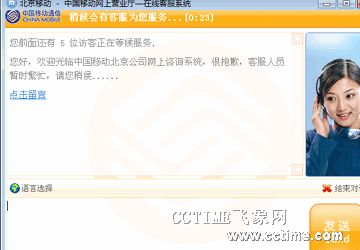 據(jù)悉,北京移動(dòng)的在線客服系統(tǒng)采用了LIVE800網(wǎng)站實(shí)時(shí)交流系統(tǒng),用戶可直接通過Web的形式與在線客服人員進(jìn)行實(shí)時(shí)交流。與10086語音客服相比,在業(yè)務(wù)咨詢方面,在線客服可直接通過文字和網(wǎng)頁鏈接的形式為用戶解答各種業(yè)務(wù)咨詢,不僅提高了工作效率,同時(shí)提升了業(yè)務(wù)咨詢質(zhì)量。