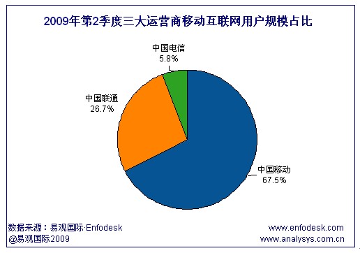 易觀國(guó)際(Analysys International)研究發(fā)現(xiàn),相比2009年第1季度,中國(guó)聯(lián)通、中國(guó)電信的移動(dòng)互聯(lián)網(wǎng)用戶(hù)規(guī)模占比都有小幅增長(zhǎng)。尤其是中國(guó)電信,在2009年5月17日正式推出WAP業(yè)務(wù)并輔以豐富應(yīng)用,在某種程度上加速了中國(guó)電信移動(dòng)互聯(lián)網(wǎng)用戶(hù)規(guī)模的小幅攀升。