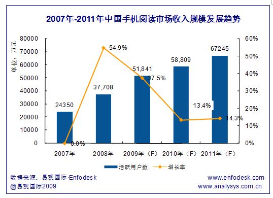 易觀預測:2010年中國手機閱讀活躍用戶數將達2億