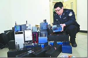 3月23日凌晨5時(shí)許,警方兵分五路,一舉搗毀位于西城、石景山、通州等地的5個(gè)群發(fā)窩點(diǎn),抓獲四川籍向某、河南籍徐某等8名嫌疑人,同時(shí)繳獲了涉案手機(jī)短信群發(fā)器62臺(tái)、臺(tái)式電腦15臺(tái)、筆記本電腦2臺(tái)、用于短信群發(fā)的電話卡4000余張。